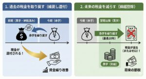 手元にまとまった現金(キャッシュ)が直接戻ってくるため、赤字による資金ショートを防ぐ強力なカンフル剤になります。